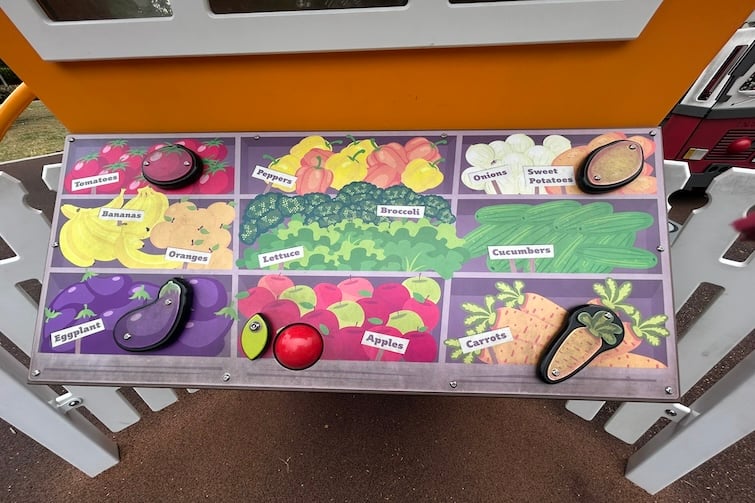The other cubby has a firehouse theme. Kids can drive the fire truck, ring its bell, and check out Sparkyโs kennel. Kids can slide, clamber through the tunnel or check out the interactive sensory boards inside the fort.