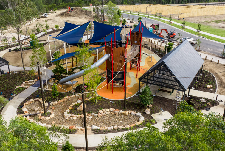 Spanning one hectare, this nature-inspired park is designed for families to play, explore, and connect. The park celebrates the local landscape and Kabi Kabi Country with beautiful natural materials, native plantings, and public art woven with cultural storytelling.