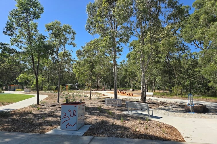 The transformation of leafy John Bray Park, north of Brisbane, has seen the addition of a nature-themed playground with a scribbly gum theme throughout. Featuring a large play tower, slides, swings, exercise equipment, sports courts and paths, it makes for a fun destination for the whole family.