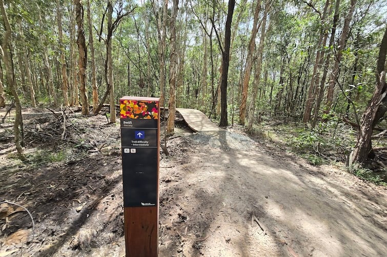 As the trail was built among the bush there are plenty of trees and their trunks surrounding it, which pose as obstacles. For this reason, and due to the raised boardwalks, berms, jumps and rollers, itโs a good idea to do a slow ride-through, to see whatโs where and how you might tackle the trail on future rides.